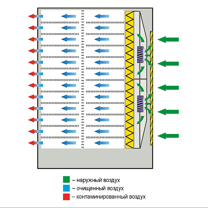 | Приточный HEPA-фильтр класс по ГОСТ Р ЕН 1822-1 | H14 |
