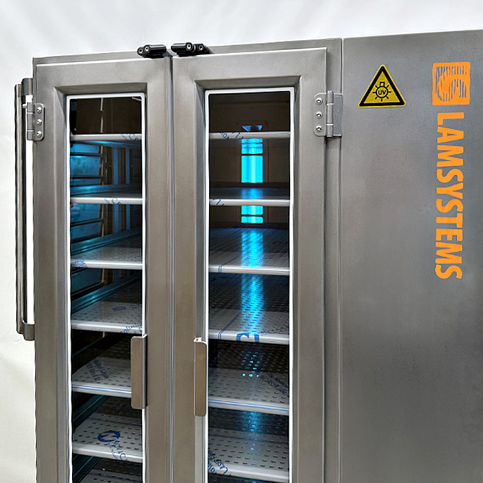 - По всей высоте задней стенке располагается две лампы УФ-облучения, от возможных механических повреждений лампы защищены специальной перфорированной защитой из нержавеющей стали