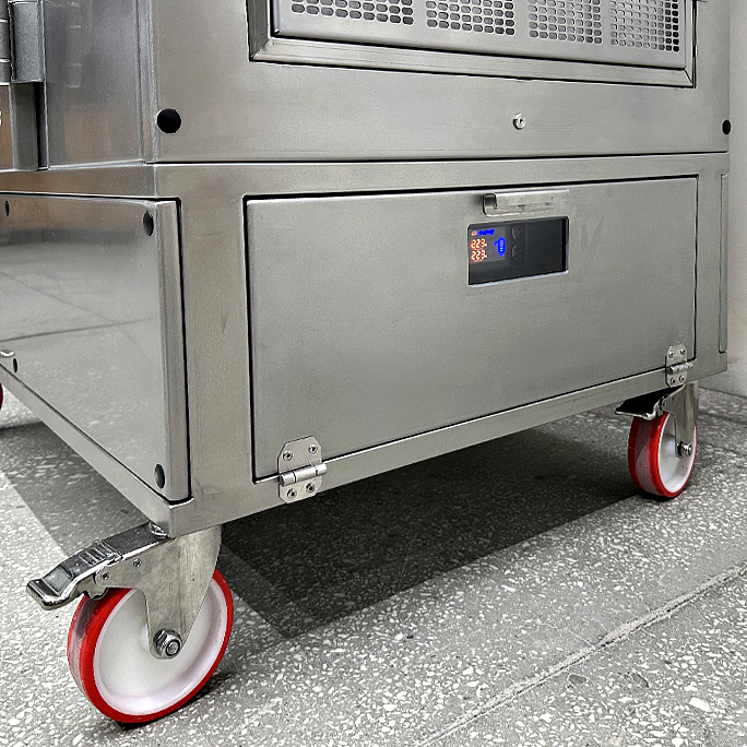 - Корпус мобильной тележки выполнен из нержавеющей стали AISI 304