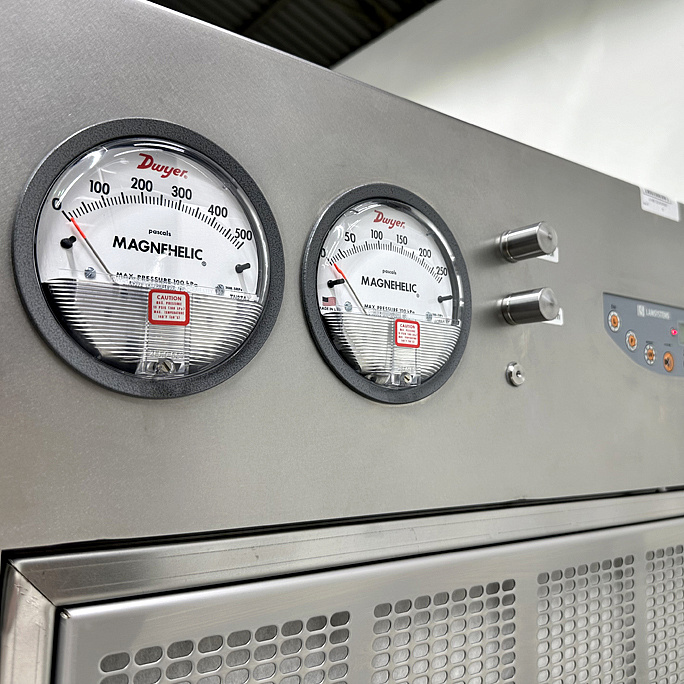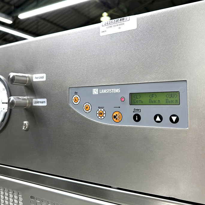 - Очистка воздуха, поступающего в рабочую камеру, двуступенчатая — сначала через предварительный фильтр G4 и затем через HEPA-фильтр Н14.