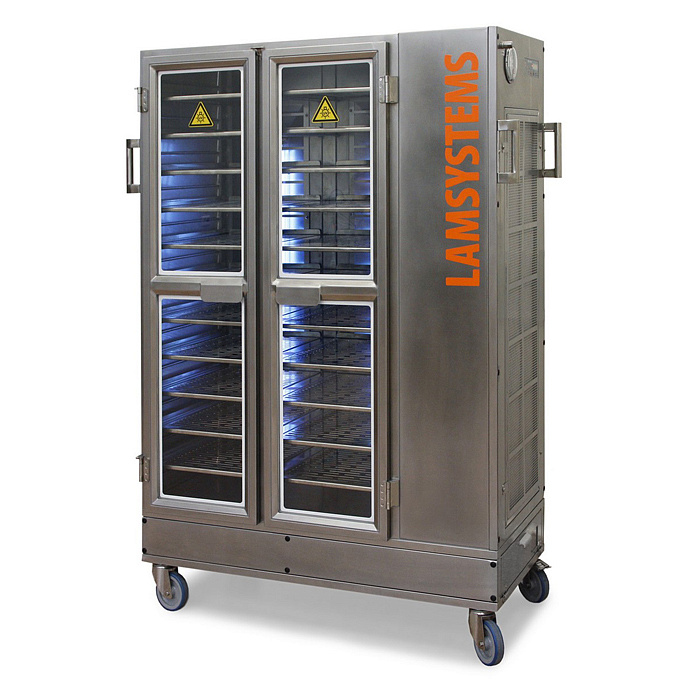 Мобильная тележка с горизонтальным ламинарным потоком предназначена для защиты предметов и материалов внутри рабочей камеры от внешних и перекрестных загрязнений при транспортировке материалов и предметов между помещениями различных классов чистоты без необходимости подключать тележку к электрической сети.