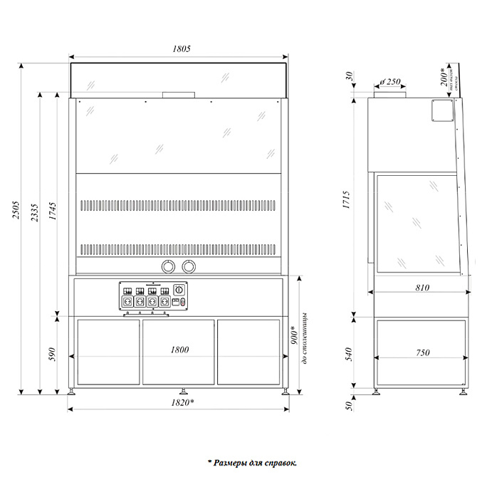 * Размеры указаны без учета выступающих частей.