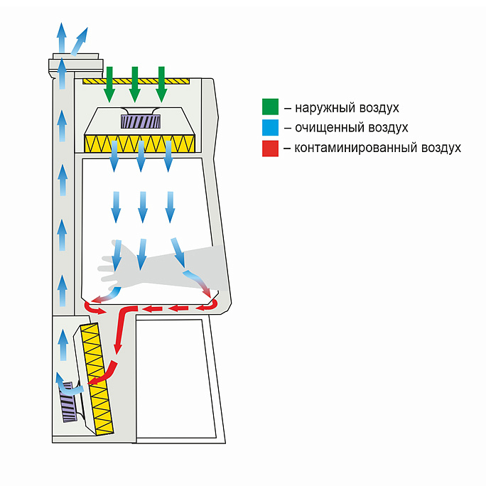 Для физической изоляции (удержания и контролируемое удаление из рабочей зоны) аэрозолей продукта, в том числе патогенных биологических агентов (ПБА) и микроорганизмов, с которым осуществляется работа в рабочей камере, с целью предотвращения возможности заражения воздушно-капельным путем персонала и контаминации воздуха рабочего помещения и окружающей среды.