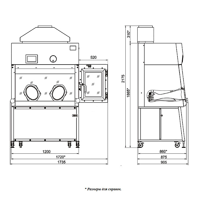 - Подъемное фронтальное окно для загрузки оборудования оснащено двумя овальными эргономичными перчаточными портами. Материал стекла — триплекс.
