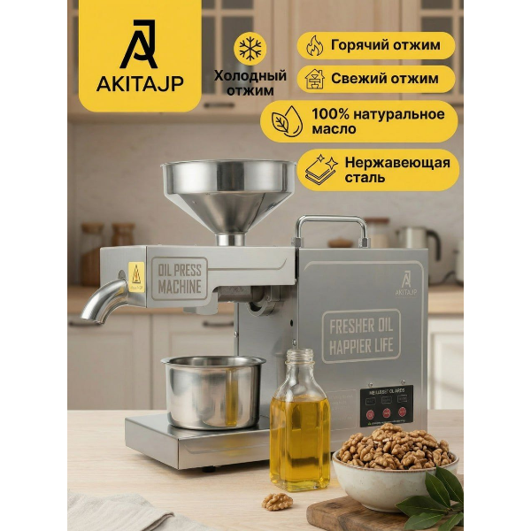 AKITAJP AKJP-100 – это современный бытовой маслопресс для домашнего использования, позволяющий получать натуральные растительные масла методом холодного и горячего отжима. Благодаря продуманной конструкции и высокому качеству материалов, этот домашний маслопресс идеально подходит для приготовления полезных масел из различных семян и орехов.