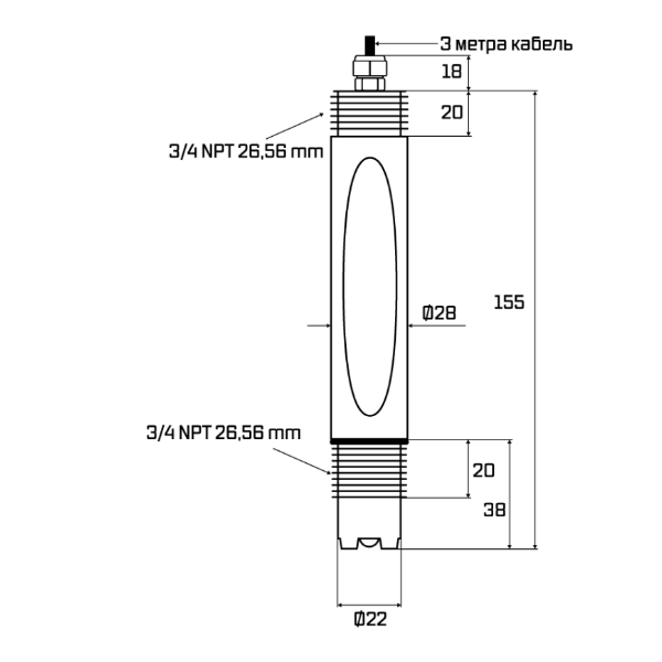 pH-электрод AQUA-LAB AQ-PH-LIM3 с термокомпенсацией для анализа сточных вод с содержанием извести и шлама