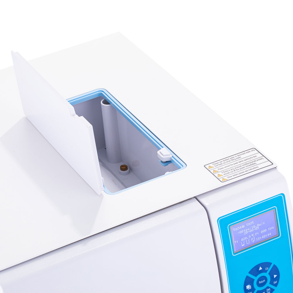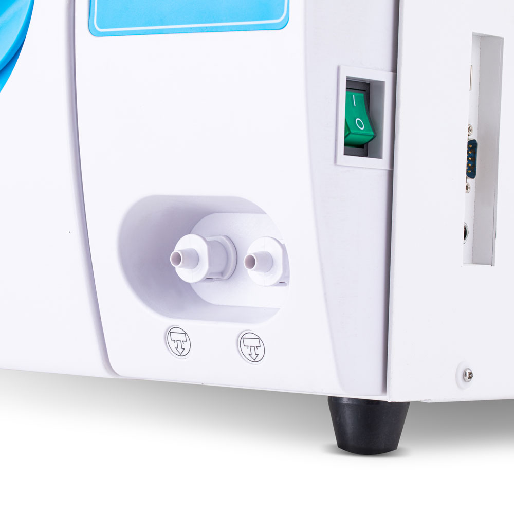 • Подключаемый термопринтер. С помощью входящего в комплект принтера можно распечатать подробные данные о проведённой стерилизации: тип программы, температуру, давление, время обработки и сушки и прочие. Кроме того, всю информацию можно сохранить на USB-накопителе.