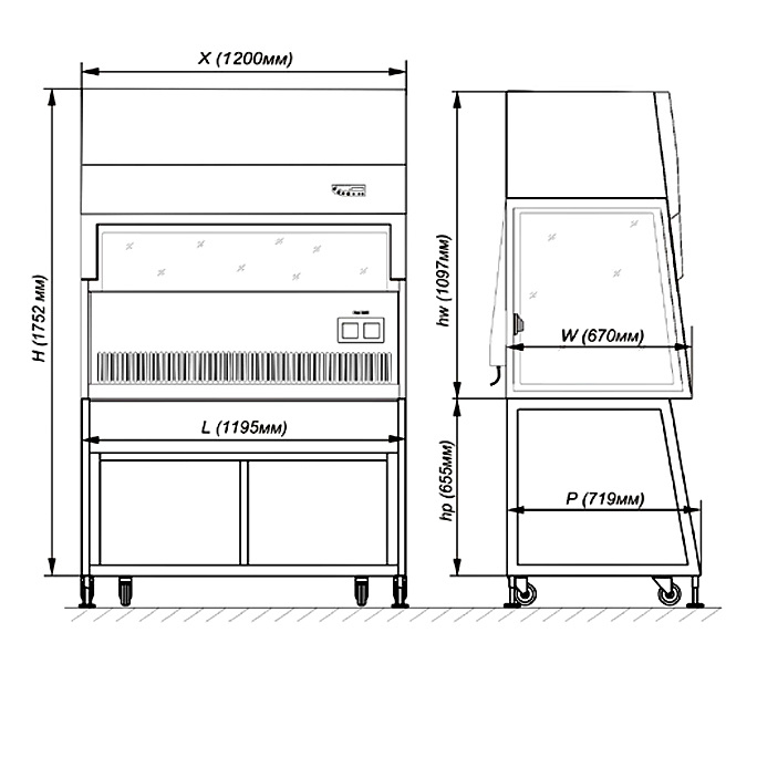 | Размеры корпуса, мм, не более(Ширина Х, Глубина W, Высота hw /(H*)) | 1200x670x1097/(1752) |