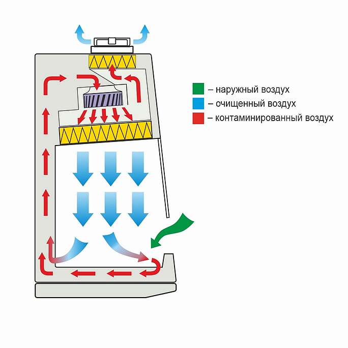 - очистка воздуха, удаляемого из бокса, происходит через выпускной НЕРА-фильтр Н14;