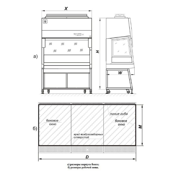 * Высота бокса на стандартной подставке, без учета колес, опор, крышки верхней, зонта вытяжного.