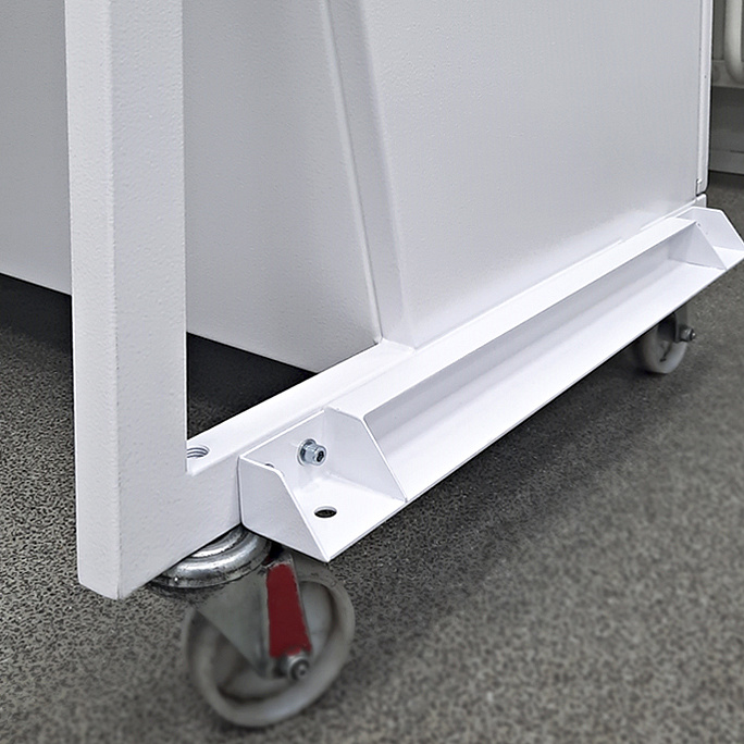 - Бокс снабжен винтовыми опорами для жесткой фиксации на месте эксплуатации и колесными опорами, предназначенными исключительно для удобства перемещения при установке бокса.