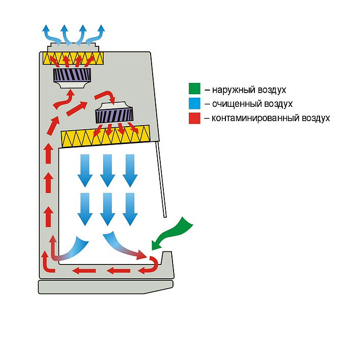 - очистка воздуха, удаляемого из бокса, происходит через выпускной НЕРА-фильтр Н14;