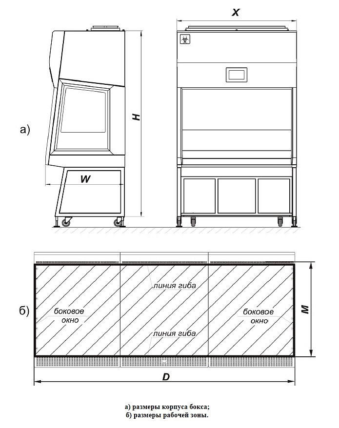 * Высота бокса на стандартной подставке, без учета колес, опор, крышки верхней, зонта вытяжного.