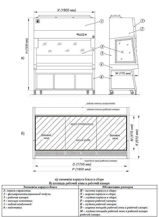 * Высота бокса на стандартной подставке, без учета колес, опор, крышки верхней, зонта вытяжного.