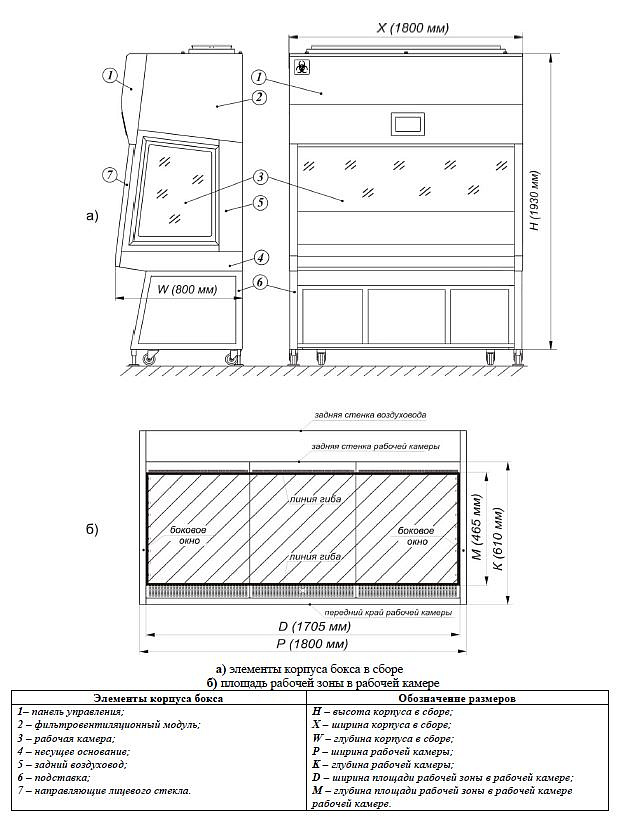 - Бокс представляет собой вентилируемую камеру с рабочим проемом, через который оператор может проводить манипуляции внутри бокса.