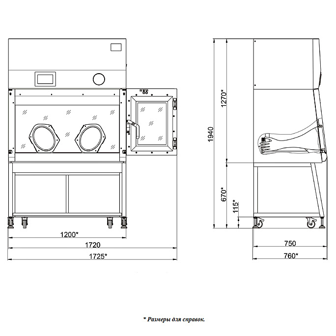 - окно оснащено двумя овальными перчаточными портами; на портах предусмотрены зацепления для установки автономного модуля проверки целостности перчаток (не входит в комплект поставки, поставляется в качестве опции);