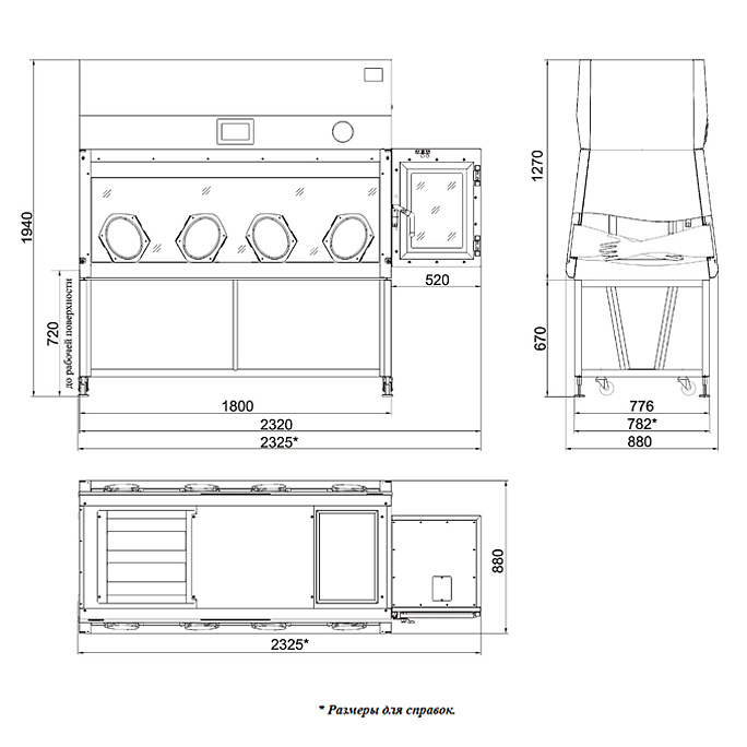 - каждое окно оснащено четырьмя овальными перчаточными портами; на портах предусмотрены зацепления для установки автономного модуля проверки целостности перчаток (не входит в комплект поставки, поставляется в качестве опции);