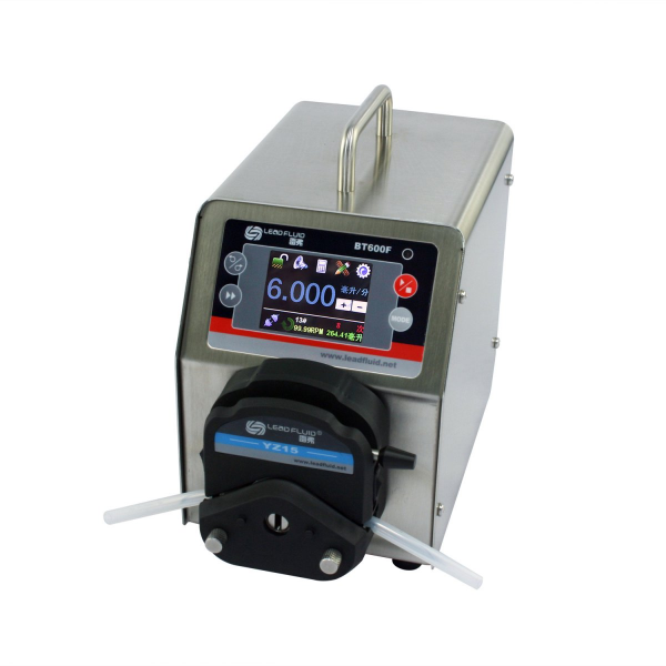 Насос перистальтический BT600F, Lead Fluid — интеллектуальный дозирующий насос, обеспечивающий расход от 0,006 до 2900 мл/мин благодаря регулируемым головкам насоса и трубкам. Он предлагает не только интуитивно понятный интерфейс с цветным сенсорным ЖК-экраном, но и расширенные функции, такие как калибровка расхода и функция защиты от капель для точной передачи потока.