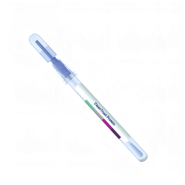 CleanTrust Protein – простой и быстрый способ контроля чистоты поверхностей, в основе которого лежит обнаружение остаточного содержания белка после санитарной обработки. Просто проведите тампоном по поверхности, выдавите реагент, и если в пробе присутствует остаточный белок, реагент изменит цвет на фиолетовый.