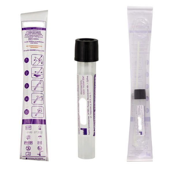 - Со средой Amies без угля — для транспортировки бактериальных образцов, в частности, для диагностики инфекционных заболеваний, вызванных бактериями).