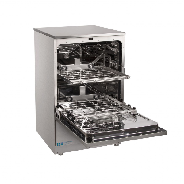Различные варианты вставок и тележек позволяют качественно отмывать любые виды лабораторной посуды: колбы, пипетки, пробирки, стаканы, чашки Петри и т.п.