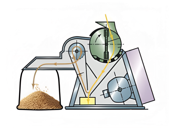 - Воздушный поток от вентиляторов отделяет лёгкие примеси и направляет их в половосборник.