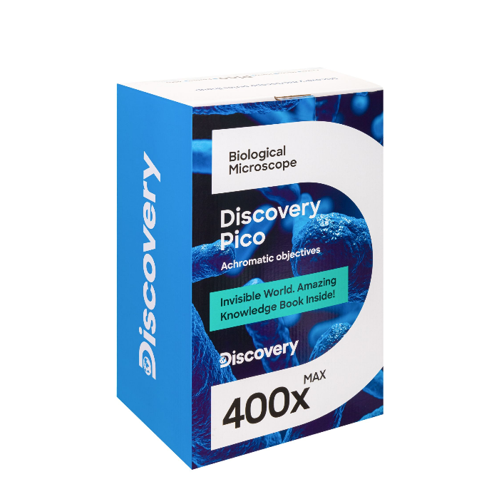 Levenhuk Discovery Pico – микроскоп начального уровня, который можно использовать для множества наблюдений методом светлого поля в проходящем и отраженном свете. Он прост в использовании, создает четкую картинку, позволяет изучать образцы на увеличении от 40 до 400 крат. А так как в комплектацию включена книга знаний «Невидимый мир», освоить азы управления и провести первые исследования становится еще проще.