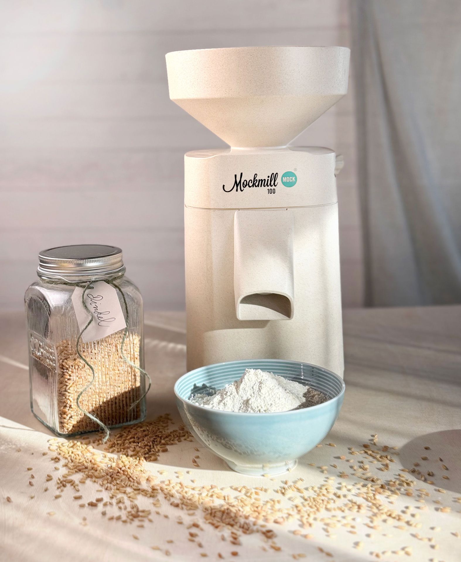 Mockmill MM100 — электрическая мини-мельница с каменными жерновами для помола зерна и производства цельнозерновой муки в домашних условиях.
