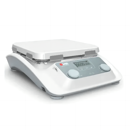 Магнитная мешалка с подогревом DLAB MS10-H500-Pro. Объем перемешивания до 30 л, скорость до 1500 об/мин, нагрев до 500°С.