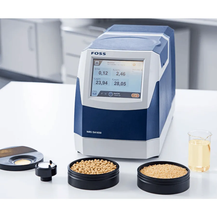 NIRS DA1650 — анализатор кормов и силоса с диодной матрицей (DDA) на основе отражения и пропускания в ближнем ИК-диапазоне с гибким диапазоном сканирования 1100-1650 нм. Это компактное и удобное устройство для инфракрасных анализов на средних и небольших предприятиях по производству кормов, а также для лабораторий.