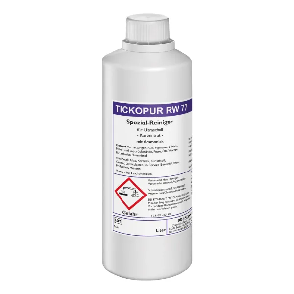 Аммиачная жидкость для ультразвуковой ванны TICKOPUR RW 77 относится к специальным промышленным средствам для ультразвуковой очистки и дезинфекции.