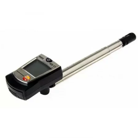 Термоанемометр Testo 405-v1 – портативное устройство стик-класса, предназначенное для измерения температуры, скорости движения воздушного потока, Обеспечивает исследование объемного расхода до 99990 кубических метров в час. Легкое и быстрое считывание полученной информации происходит при участии настраиваемого положения экрана. Модель идеально подходит для проведения замеров в крупных воздуховодах, а также в зонах окон и дверей с некачественной герметизацией. Прибор снабжен телескопической рукояткой, длина которой достигает 300 мм.